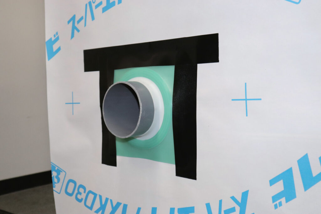 A molded flashing solution for pipes penetrating exterior walls, including ventilation outlets, A/C piping, overflow pipes, and electrical conduits. The center section uses a highly flexible soft resin that tightly seals around pipes, eliminating the need for conventional waterproof tape or putty in most applications. Available in multiple sizes—from small conduits to large‑diameter pipes—this product ensures clean, reliable waterproofing with minimal labor.