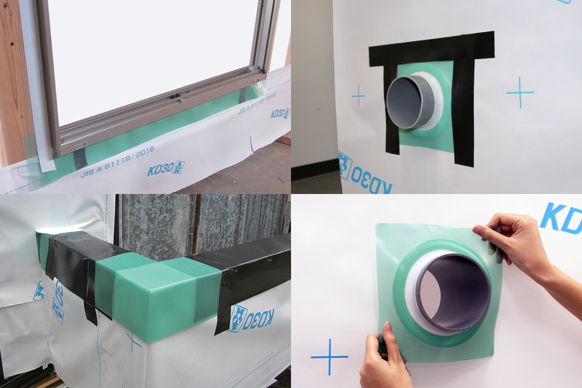 A molded flashing solution for pipes penetrating exterior walls, including ventilation outlets, A/C piping, overflow pipes, and electrical conduits. The center section uses a highly flexible soft resin that tightly seals around pipes, eliminating the need for conventional waterproof tape or putty in most applications. Available in multiple sizes—from small conduits to large‑diameter pipes—this product ensures clean, reliable waterproofing with minimal labor.